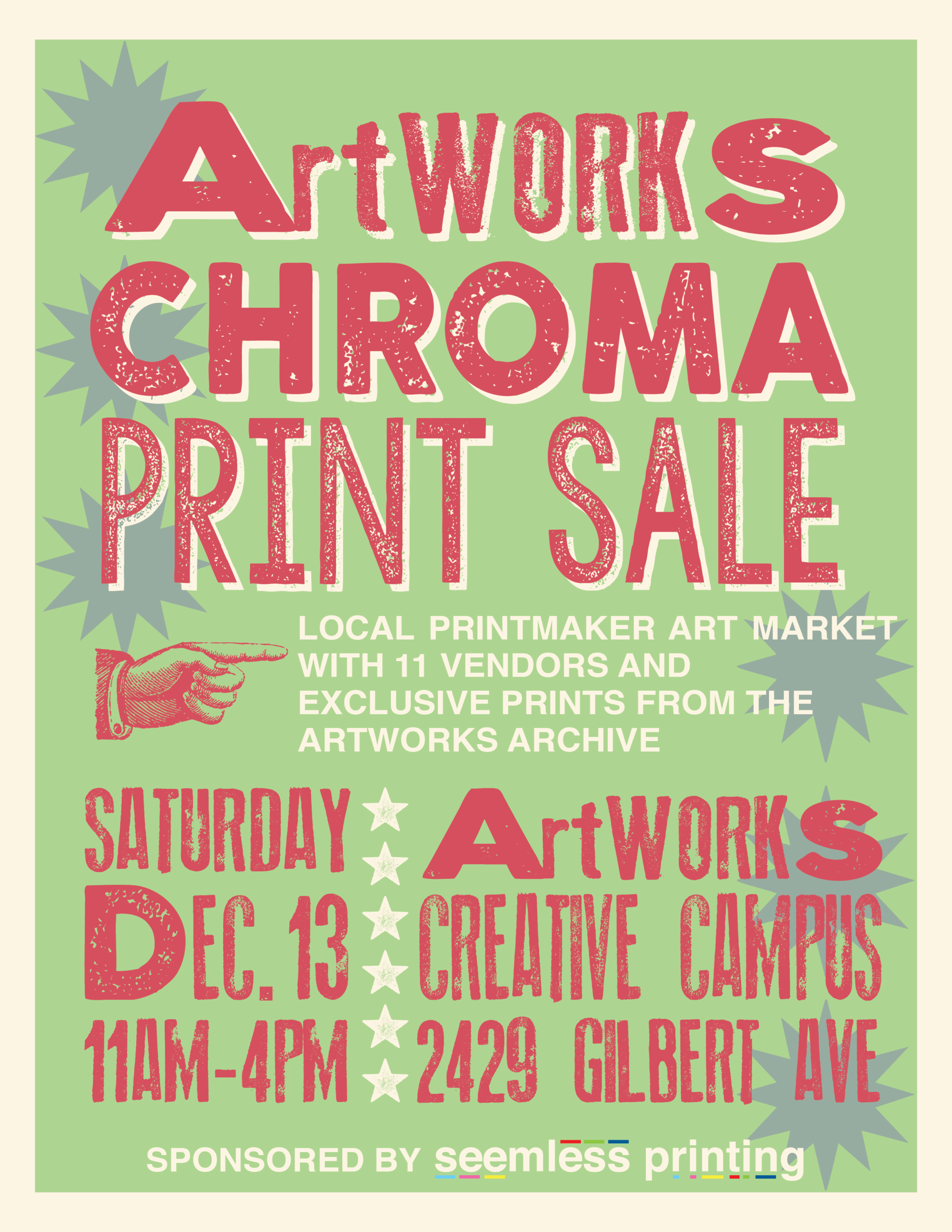 ArtWorks Creative Campus 2429 Gilbert Ave, Cincinnati, United StatesJoin ArtWorks for the inaugural Chroma Print Sale on Saturday, December 13, 2025, from 11 a.m. to 4 p.m. at the ArtWorks Creative Campus! Just in time for the holiday gift-buying season, this art market will showcase 11 talented local...