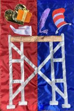 What our Apprentice Danny LaCharity wrote about the flag design: “I chose the hand symbol to draw reference from the Cincinnati Public School logo, the pencil for your work as a teacher, and the yarn and knitting needle for your interest in handwork and knitting.”