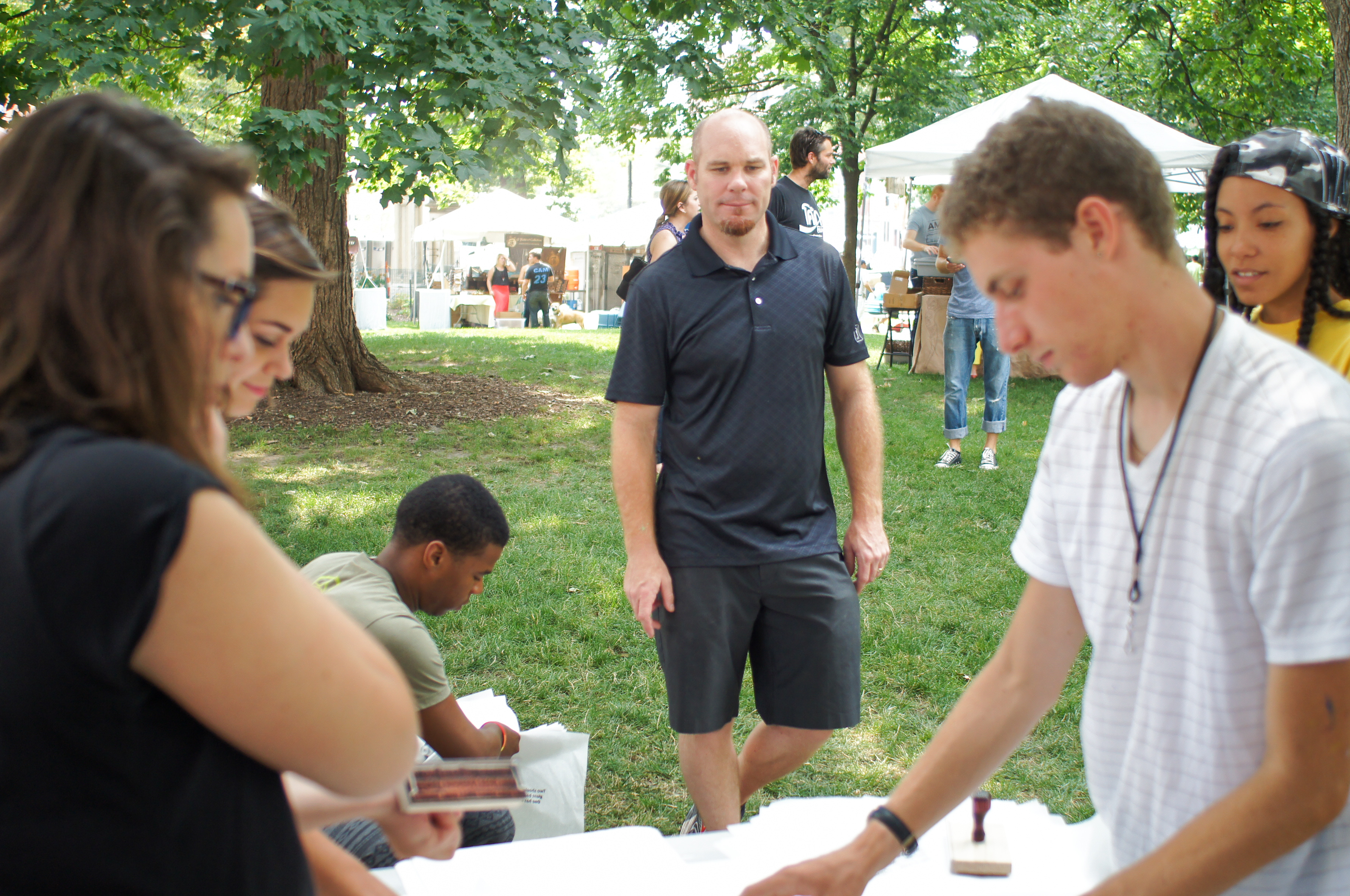 Life Theater is a performance art piece which combines the spontaneous world in which we live with the planned world of theater. What seem to be everyday activities to unsuspecting onlookers are actually thought out, planned performances by ArtWorks artists. Life Theater was a temporary project that took place over the course of 5 days during the summer of 2014. The widely celebrated experiential artist Lee Walton lead 8 ArtWorks Apprentices to complete this temporary piece. The team made several appearances at various parks throughout the city including: Washington Park, Owl’s Nest Park, and Ault Park.